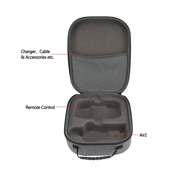 The strengthed webbing carrying handle is very durable and comfortable to carry; and we use waterproof zipper for our EVA Carrying case for DJI Mavic Air2S, makes our case waterproof in all directions, can be safely used outdoor.
